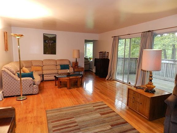 Impeccably maintained Ranch in private, wooded location. Large rooms & gleaming HW flrs. LR w/floor-to-ceiling brick FP, double sliders to deck offering gorgeous wooded views. Formal DR w/clng fan.Family Room w/large bay window overlooking woods & access to 3 Season Enc. Porch. MBR offering abundant closet space and a ceramic tiled en-suite Bath w/glassed in stall shower. 2 additional FF Bedrooms with double closets. Large Hall Bath w/ceramic tile walls and floor and shower-over-tub. Fin. Bsmt with Mother/Daughter possibilities. Large Rec Room with parquet floors, wainscoting, brick fireplace and sliders to the Patio. Bedroom with parquet floor and double closet. Full Bath with glassed-in stall shower. 2 storage rooms - one extra large with workshop. Laundry Room w/ct floor. New windows, furnace, roof.