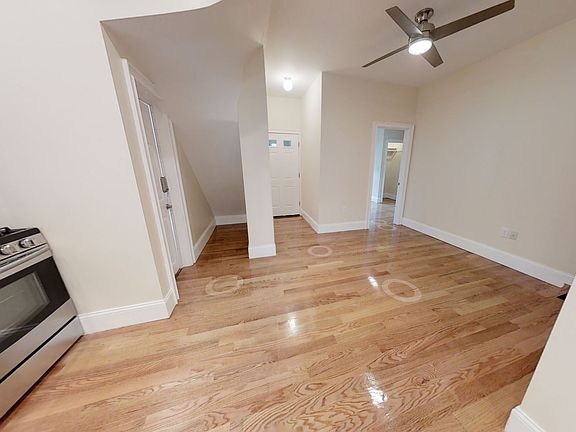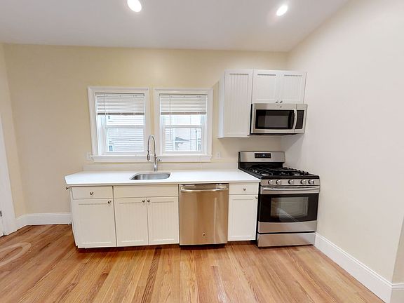 2 bed/1 bath (1st floor) Modern and updated kitchen and bathroom Open living room/kitchen Hardwood floors Laundry in-unit Private deck Central heat/AC Street parking with permit