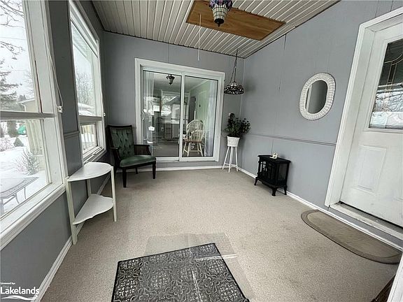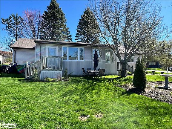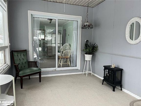 Welcome to 8 Claremont Crescent. Located in Fergus Hill Estates .This 2 bedroom, 1 bathroom mobile home offers 1,189 Square feet of living space all on one level. When you enter the main door, you enter an enclosed Sunroom, which leads to your Great Room, with open concept Kitchen, Dining and Living room, with newer vinyl flooring, and an electric fireplace. The bathroom is a 3 pc with a walk-in shower unit, and also has a stackable washer/dryer. There are 2 generous size bedrooms, and this home also features a family room with separate access to yard via a small porch. Other Features of this property are the shed for storage, landscaped yard and double wide driveway constructed on interlocking bricks. Recent upgrades include new flooring in Great Room, new shingles on roof, mostly new windows, upgraded insulation in attic and crawl space. Fergus Hill Estates is an All Season Mobile Home Park in Oro-Medonte and just minutes to the City of Orillia for easy access to healthcare, shopping, hospitality, and recreational services. Enjoy the outdoors at Bass Lake Provincial Park, The Langman Bird Sanctuary or Scout's Valley all within a 5 minute car ride away.