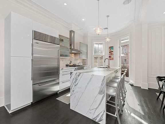 Sumptuously renovated, grandly proportioned, South End, 4+ bedroom 5+ bathroom single family home with garden, 2 decks, roof deck and 3-car parking! Over 4400 sq ft of contemporary luxury finishes on a tree-lined street steps to Southwest corridor park, restaurants and Back Bay. Previously gut renovated as 2 luxury condos, these individual homes have been combined into a single family home with an unrivaled combination of living space, bedrooms, bathrooms and outside space. Ideal for families and grand entertainers. Main entrance/parlor level welcomes you with wide open kitchen, dining and family room. Each floor above and below parlor has a primary suite with en-suite marble bath and walk-in closet. Plus, another full bedroom and marble bath. Garden level has family/playroom with gas fireplace, full marble bath and study/home gym. Top floor has wide open family/media room with soaring ceilings, skylights, full kitchen, rear deck and roof deck access. Large, luxury living in the city!