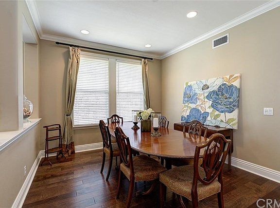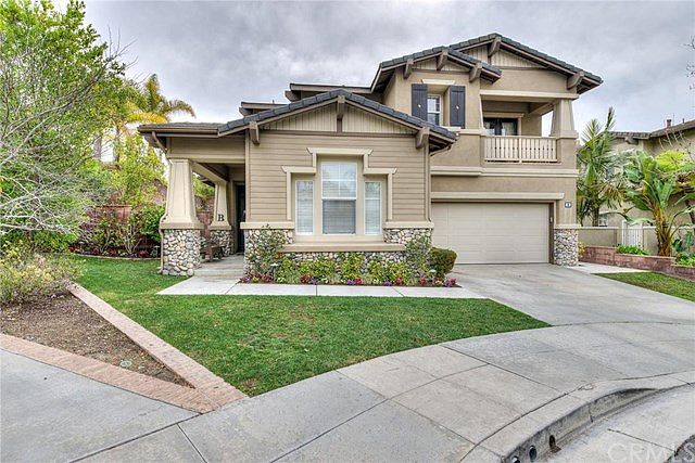 Absolutely gorgeous Prescott residence on wonderful cul-de-sac, located in the Oak Knoll Village of Ladera Ranch. Carefully selected interior finishes including beautiful hardwood flooring, upgraded baseboards, crown molding, window casings, designer paint, custom lighting, and custom closet organizers. This wonderful floor plan features formal living room & formal dining room. Gourmet kitchen is highlighted by a substantial kitchen island featuring granite counters, white cabinetry with custom knobs & pulls, & breakfast nook. Family room opens to kitchen and has built-in media niche and fireplace with mantle. Main floor bedroom has wainscoting & adjacent full bath. Romantic master suite features two walk-in closets with custom organizers and master bath with his & hers sinks, plus separate tub & shower and custom painted cabinetry. Private backyard is professionally landscaped and features patio for outdoor dining plus built-in barbecue. Close to some of Ladera's finest amenities including the Oak Knoll Clubhouse with two pools and water play park. The Oak Knoll Village is conveniently located near Ladera shopping centers and restaurants. Top rated schools including Chaparral Elementary, Ladera Ranch Middle and Tesoro High School.