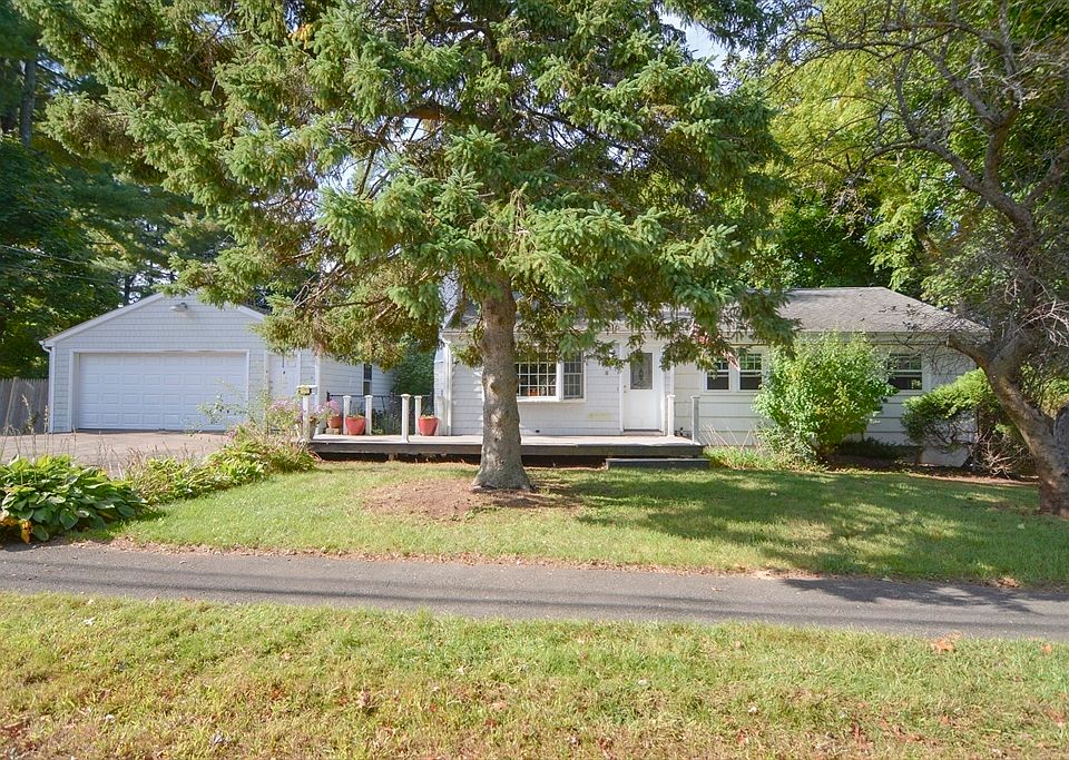 Exciting Opportunity in West Peabody! Unlock the potential of this 3-bedroom, 1.5-bath Ranch, featuring 6 rooms ready for your personal touch. Vaulted ceilings, skylights and a fireplace welcome you into the open living room, creating a warm and inviting atmosphere. The living room flows seamlessly into the kitchen area, ideal for gatherings and entertaining. The adjacent added back room can be used for many uses. The full basement is a blank canvas, perfect for creating additional living space, in-law, a recreation room, or extra storage. Step outside to envision your summer oasis—the backyard with an inground pool is just waiting for a transformation. The oversized detached two-bay garage provides ample space for up to 2 cars and storage for tools, equipment, or hobby items. With some TLC and creativity, this property can be transformed into your custom dream home in a sought out area of a city that is known for low taxes and huge saving with electricity. Easy to show!