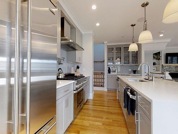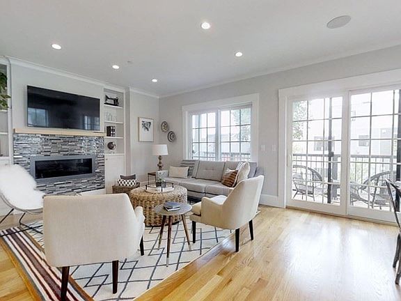 Impeccable, luxury townhouse available for rent starting 2/1/2022. Open floor plan, gas log fireplace living room with crown moldings, reclaimed maple mantle with built in storage shelves and built in ceiling speakers throughout. Chef's kitchen with extra pantry space, ultimate in high end appliances with Subzero refrigerator and Thermador professional quality gas range and wine fridge, 2 guest bedrooms, 2 decks and laundry room. Third level of living features the dramatic ceiling primary bedroom with over-sized en suite bath, double vanity, soaker tub and large private deck. Attached pull in garage as well as second off street parking space round out the perfect home. Conveniently located close to Tufts University, Davis Sq, Porter Sq, shops, restaurants and more!