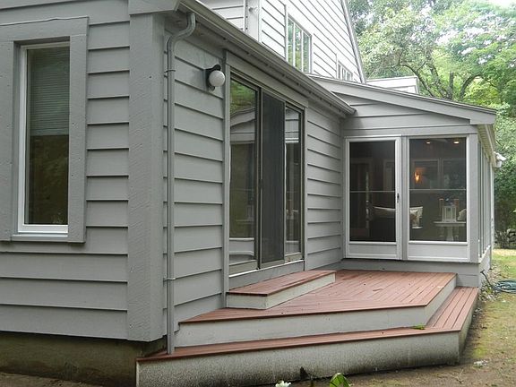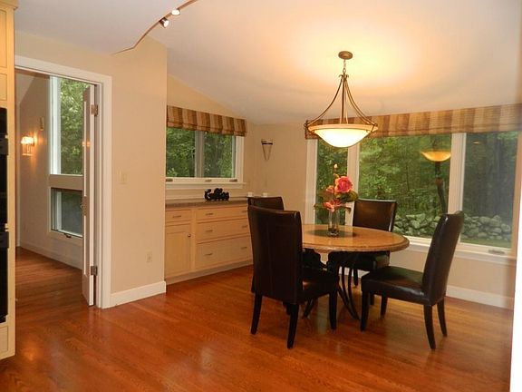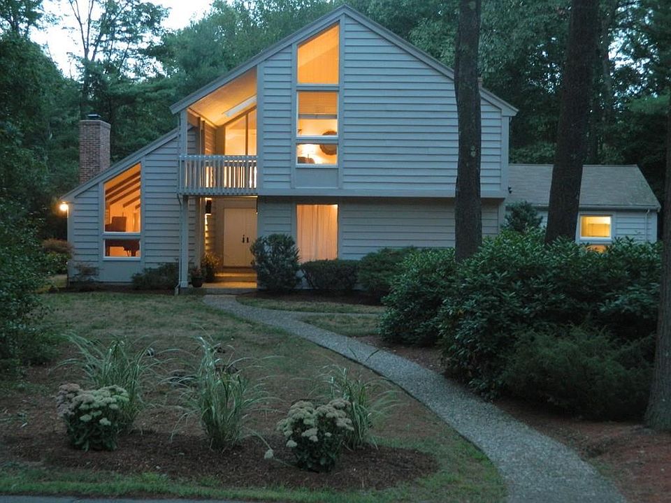Impressive Contemporary built by renowned local builder and tucked away on a quiet cul-de-sac that blends with its natural surroundings reduced in price by $90,000. This 3200 sqft home is tastefully accentuated by vaulted beamed ceilings, skylights & oversized windows offering beautiful views of the landscaped grounds & stone walls. The wood burning fireplace family rm is the perfect spot to spend time w/ French doors leading to a 3 season rm. The new custom fully applianced kitchen, fireplace living rm, dining rm, huge play rm with new sliders to deck, half bath & mud rm complete the first floor. Four generous size bedrooms including the cathedral ceiling master suite w/ sliders to private balcony/deck and ensuite bath with steam shower and laundry room unify the 2nd floor. Beautiful hardwood floors throughout, freshly painted exterior and interior, newly insulated, central AC, and a 2 car garage. Same owner for last 32 years!. Close proximity to walking trails & commuter route