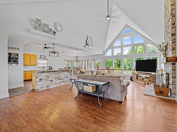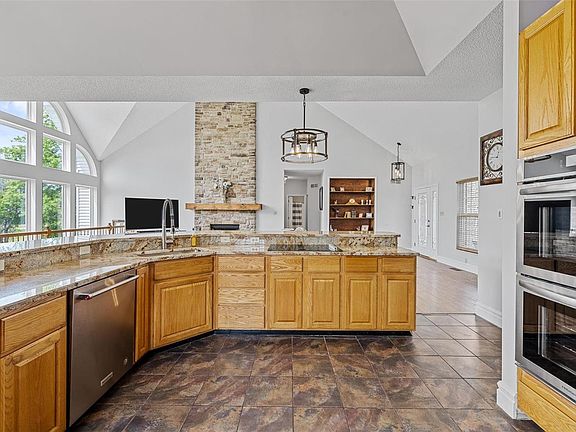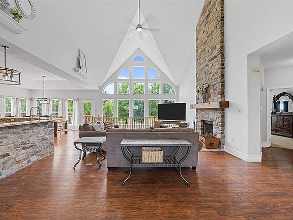 Welcome to your dream home! This opulent atrium ranch house will impress with 4642 sqft of living space, vaulted ceilings, and a beautifully finished basement. The lower level includes a complete large kitchen which sets up an excellent in-law or college suite. Step outside onto the large wrap-around deck and take in the stunning golf course views from your corner lot with a large yard. Enjoy the fantastic views from the main level bonus room, perfect for a quiet home office. The new stainless appliances and freshly painted walls will catch your eye, but the soaring stone fireplace and matching custom stone island will take your breath away. Additional features include two sets of washer and dryer hookups, Central Vac, a 240 amp outlet in the oversized three-car garage, a lawn irrigation system, and much more. This luxurious home is perfect for entertaining and making unforgettable memories with loved ones. Don't wait; schedule a viewing today and make this stunning home yours!