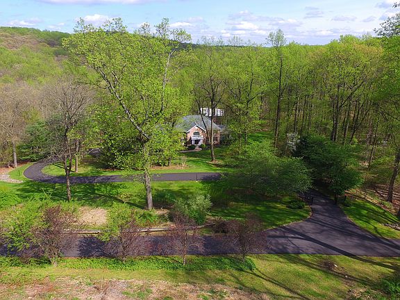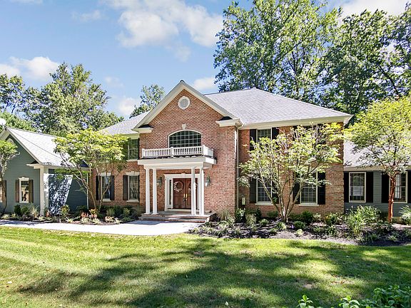 Stunning 6 bedroom center-hall colonial set on 5 serene acres. Move-in ready with updated kitchen & master bath, brand new stainless-steel kitchen appliances, freshly painted, wood floors refinished, new basement carpet, new sprinkler system & custom paver walkway. The beautiful estate offers a spacious and open floor plan with 7,718 finished sf. Five of six bedrooms are en suite, with a 1st floor bedroom, bath and laundry. The home boasts a gourmet kitchen with large center island, butler's pantry, formal dining room, breakfast area, family room with rock fireplace, wet bar and cherry library for the perfect home office or study. The fully finished, 1750 sf walk-out basement includes a 2000 bottle wine cellar, bar, rec room with fireplace, gym, workshop, full bath, bridle closet and ample storage closets.