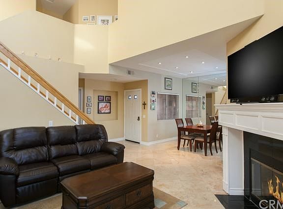 Very private exterior location with one of the communities largest yards! This Sierra Verde Plan C floor plan boasts an open concept dining and living room complete with fireplace and vaulted ceilings, large completely upgraded gourmet kitchen, private downstairs patio and large fenced in backyard, third bedroom downstairs has been converted from a den (no closet), downstairs full bathroom, laundry room, master bedroom retreat complete with en suite master bath and massive walk-in closet. The astounding upgrades include a completely remodeled kitchen with top of the line appliances, cabinets with soft close hardware, spice rack, pull out and lazy susan shelves, beautiful sealed and polished travertine flooring downstairs, custom mantle with hidden storage for media components, new toilets and fixtures in all three bathrooms, built in cabinets and epoxy flooring in the garage. Community amenities include pool and spa with large lounging deck, tot lot, barbecue and picnic area and greenbelt. Come see all this beautiful Rancho Santa Margarita home has to offer!
