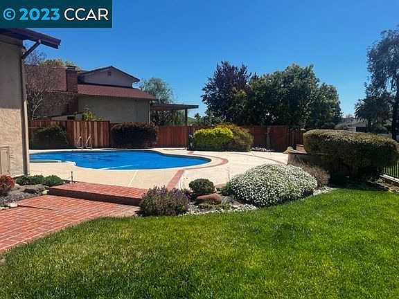 This beautiful home is located on a quiet court and nestled in the heart of San Ramon. A great location on a large 9500 square foot lot and backing to the San Ramon Golf Course with great views of the hills. Over 2500 square feet of living with living room, dining room, family room, 4 bedroom and 3 full baths, including a bedroom and bath downstairs. Inviting floor plan with double door entry, vaulted ceilings and lots of natural light and new dual pane windows. Kitchen with hardwood floors, upgraded maple cabinets, newer appliances, upgraded solid surface countertops and eat in nook. The family room features engineered hardwood flooring, stone fireplace and sliding door to backyard. The large primary bedroom has neutral carpet, sliding glass door to back balcony with great views! Primary bath is fully remodeled with walk in closet, 3 vanity areas, custom tile and whirlpool tub. The backyard features a pool, easy care landscaping and view of the hills. Three car garage and a court location - A great home!