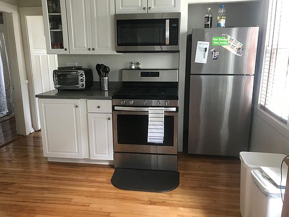 Owners pride - First floor of two family. Apartment completely repainted (2 years ago) along with refinished HW floors (2 year ago). Two year old eat-in kitchen (look at cabinets ) In the kitchen are stainless steel refrigerator, disposal, and stainless steel dishwasher. High quality appliances (see pictures) Insulated vinyl windows. Formal living room and dining room w a built-in hutch. Two bedrooms. Limited storage. Gas heat. Two exterior balconies. Parking for two small cars. Shared w/d. Tenants pay for all utilities except water/sewer. Non smokers, no pets, excellent credit, first/security/half agent fee. Very good credit. Excellent Credit. First/Security/Half Agent Fee. Non smokers/No Pets.