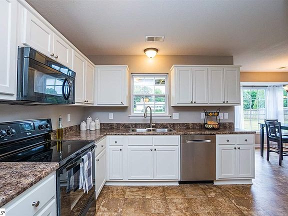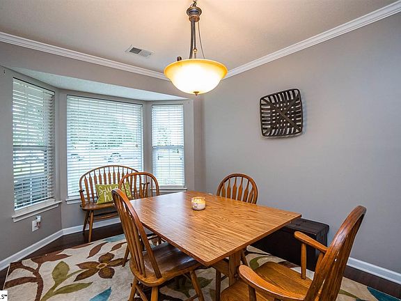 Upon entering this lovely home with a two story foyer you will see the hardwood floors, and the arched entryway in the dining room that leads into a kitchen with freshly painted cabinets and plenty of counter space. You will love all the natural light and gas fireplace in the main living area. Upstairs are three bedrooms, master bathroom and jack n jill bathroom, laundry room, and a huge bonus room that could be used as a fourth bedroom. The master bedroom is equipped with two walk-in closets and opens onto its own private deck with a beautiful view of the area! The large backyard is fully fenced and includes a covered patio, fire pit area, and a play set. You don't want to miss this cute house in this nice quiet neighborhood in Travelers Rest!