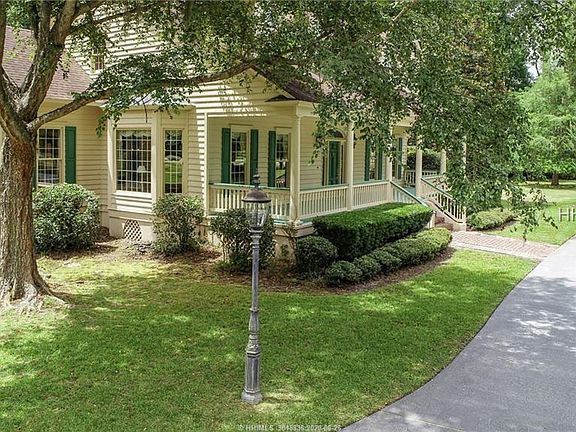 Iconic 4 BR 4.5 BA lowcountry hm surrounded by majestic oaks on an almost 3 acre equestrian lot in Rose Hill. Custom built w/ a circular drive, the house has oak flrs, copper plumbing, irrigation well & 3 car garage. From wide front porch, a leaded glass entry leads to spacious 2 story center hall. Curved staircase to 2nd floor w/ 2 spacious BR, each w/ its own BA, & 2 separate floored attics for storage. A large DR w/ bay window is left of the foyer & on right is LR w/ lovely fireplace. Big eat in kit. has center island adjacent to glass carolina rm overlook- ing lush wooded garden. 2nd staircase to upstairs bonus rm w/ BA. Fireplace in FR.