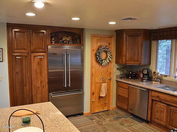 This is a very unique Cabin, it has it all, your living on top of the mountain with views of Greer Village, & mountains. Located in the middle of Greer. 3.4 acres, total privacy & peacefullness. 4 bedrooms with 3 Baths, Master bedroom downstairs, Upstairs master bedroom is being used as a guest bedroom, split bedrooms., Gourmet Kitchen, walk in pantry, granite counter tops, upgraded appliances. formal dining room with Stone fireplace, Knotty Pine & Hickory Cabinets, Slate & Hardwood flooring. Great room has Stone fireplace w/ windows looking out to view mountains in the distances. office area upstairs. Lots of storage. 2 car garage, workshop, game room. Remdeled 2011. Wild life all around you, walking distance to village & Little Colorado River. Lakes, Hiking, Fishing & Skiing near b