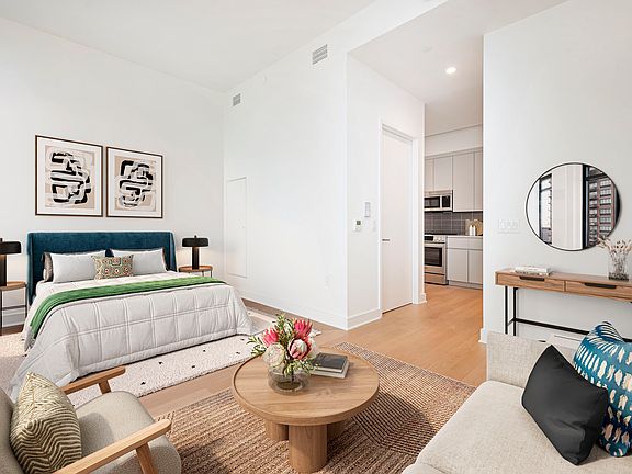 Spectacular studio apartment with oversized windows showcasing serene open views across 44th drive. This studio includes a large walk-in-closet, in-unit washer/dryer and wood floors throughout. The apartment also boasts a gourmet kitchen with full-sized stainless steel appliances and a gas range thoughtful details including a recessed quartz shower niche, oversized medicine cabinet, individually controlled heating and cooling system and keyless entry.