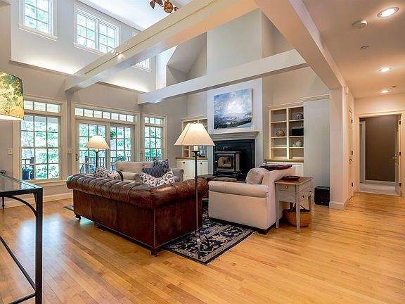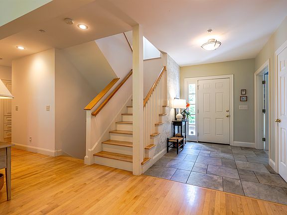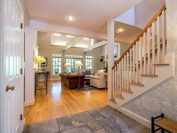 This stunning 5 bedroom, 5 bathroom cape home is full of New England charm with cedar shingles, stone walls, a gorgeous wooded lot of 6.37 acres with walking trails, mature landscaping, and a new bluestone patio. The home is located in a wonderful West End cul de sac neighborhood. Inside is filled with natural light. The open floor-plan flows between the entry, living room, dining room, and kitchen, complete with beautiful granite countertops, center island, cherry cabinets, Viking cooktop and walk-in pantry. The living room has 2-story high ceilings and a wood burning stove. Maple floors and a tiled entry. The 1st level has radiant heat floors, laundry, mudroom, and screened in porch. Cobb Hill Construction built this home in 2004, adding, in 2017, an upstairs primary bedroom with HeatnGlo fireplace, walk-in closets and a marble bathroom with custom vanity. The house now has a total of 3 spacious bedrooms upstairs, 2 full renovated bathrooms and ample storage. If 1st floor living is preferred, the home offers a bedroom with walk-in closets, renovated bathroom, and walkout to covered porch. The basement has full size windows and offers plenty of extra finished space, including an additional bedroom and full bathroom. The home has been meticulously maintained. You will be sure to love the peacefulness and privacy of this home; all while within 4 miles to downtown and within minutes to Concord Hospital. Showings begin on Friday, June 7th at 1pm.
