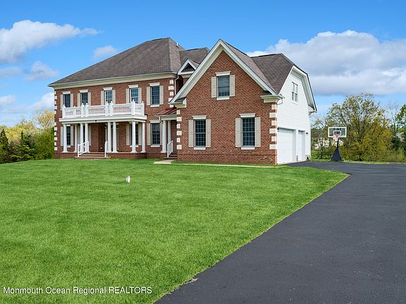 This is that rare opportunity to own a home in Manalapan's finest neighborhood, offering over 6800 square feet of living space. This brick front colonial style estate home offers 5 bedrooms and 6 baths including an in-law suite. Some amenities include a 2 acre premium lot backing to the woods for privacy, custom moldings throughout, gourmet kitchen with granite center island, 42 inch cabinets and breakfast bar. First floor also offers a spacious living room, large sunken family room, office, formal dining room, and conservatory. The primary bedroom suite has a beautiful tray ceiling and separate sitting room and the spa-like en-suite primary bath is spectacular. Final and best offers due Tuesday, May 2nd at 12 midnight There is also a 3 car garage with Tesla charging station and a full walk-out basement. All of the hardwoods have been refinished and new carpeting installed throughout the home. This is truly a turn-key opportunity and a chance to live in a stunningly beautiful neighborhood.