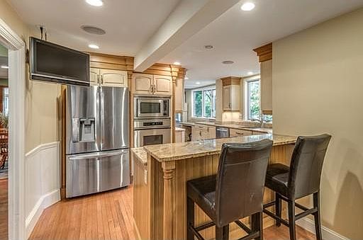 - Kit Dscrp: Flooring - Wood, Countertops - Stone/Granite/Solid, Breakfast Bar / Nook, Stainless Steel Appliances