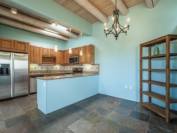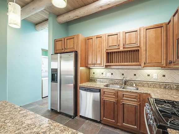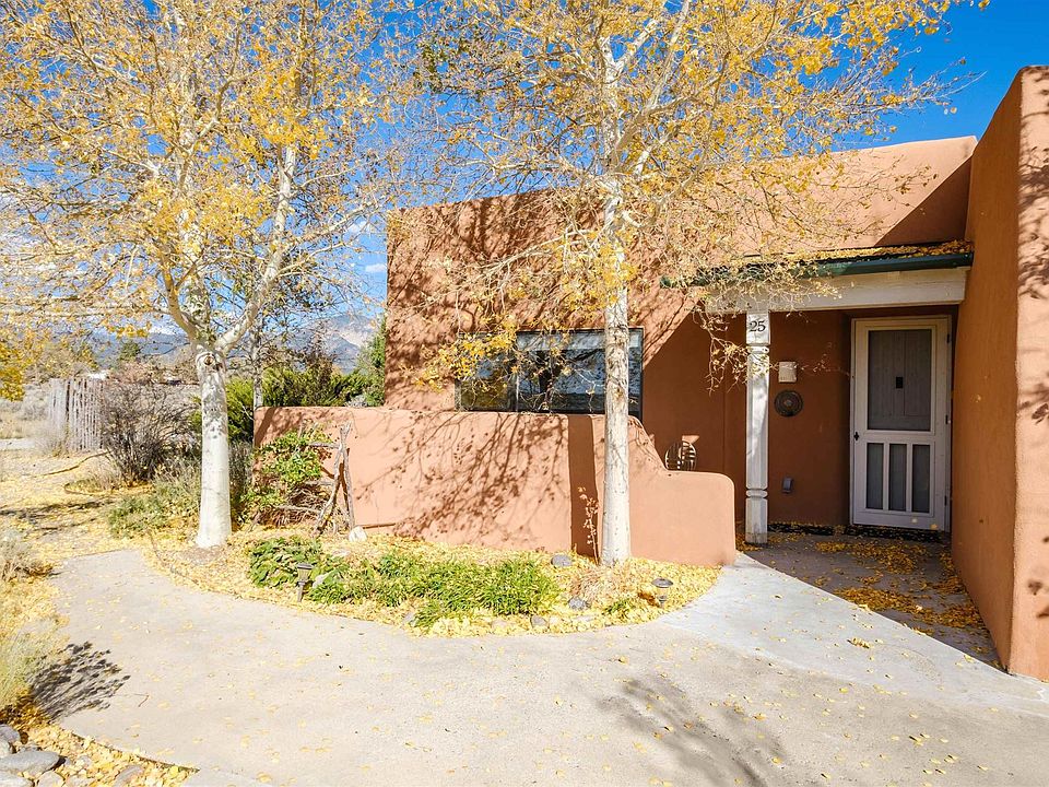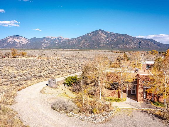 This is a must-see! Southwestern flair two bedroom two bath single-story condo located in a highly sought-after location on Ski Valley Road. It offers convenient parking just outside the front door. It boasts a lovely courtyard off the primary and guest bedrooms, which connects to a beautifully maintained common space area with walking paths and a seating area. The open floor plan living area offers a wood-burning Southwestern fireplace. The kitchen area has granite countertops and stainless steel appliances. Other notable features are the two exterior storage closets on the patio, which are perfect for all of your outdoor gear, along with a stackable washer and dryer and both bathrooms have updated granite counter tops. It's a corner unit with stunning sunset views of Taos Mountain. With skiing, hiking, biking, tennis, shopping, and dining just minutes away, why let it pass you by?