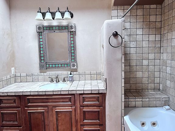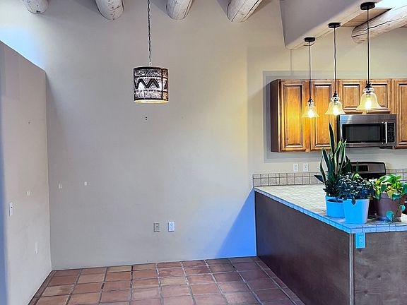 Stylish and conveniently located between Taos Ski Valley and the town of Taos, this 2 bedroom/2 bath condo off of Highway 150 is well appointed and move-in ready. Lovely Southwest touches include a kiva fireplace, bancos, nichos and vigas supporting high ceilings which give a spacious feel. Large windows allow for lots of light. The primary bedroom opens to the back patio with high walls for privacy. The ensuite primary bathroom features a deep, jetted tub with shower. The second bedroom also opens to the back patio and could double as an office. The second bath features a tub/shower combo. Radiant floor heat is run on natural gas, washer/dryer in the unit. Tenant is responsible for natural gas, electricity and Kit Carson internet. Water, trash and sewer are covered by the HOA. Tenant is also responsible for watering and weeding the back patio area. This property is represented by Digs Property Management. We are available to respond to inquires and show the property by appointment Monday-Friday, 9-4.