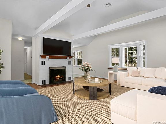 Welcome to Westport Village. One of the most charming and quaint complexes conveniently located in the heart of Westport. This complex, once believed to have been a farm, comprises 12 units spread out across 4 buildings each with their own unique character and charm. Unit 8B is a garden ranch style, 2 bed 1 bath condo.??This unit is on the main level, with no units above it, and no shared walls - there is only one unit below. This building is also set back at the far end of the complex for total privacy, and the secluded front patio looks??out over the open field with beautifully manicured grounds. Inside you'll find an oversized living room with soaring vaulted ceilings, hardwood floors and cozy brick fireplace. The bay window floods the room with natural??light. The living room flows into the country themed eat-in kitchen w/ gas stove. The kitchen also has a closet with washer/dryer. Head down the hall and you will find two accommodating bedrooms with hardwood floors and a spacious full bath. Gas heat & hot water, central air, plenty of storage in the pulldown attic, and off-street parking. Less than a mile walk to shopping and restaurants on downtown main street and restaurants on the Saugatuck River. 2 min drive to Merritt Parkway & 10 min drive to I-95 and Westport Train Station. Come and make this cozy retreat your new home!