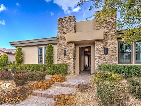"This gorgeous singe story home is located in "The Ridges" Summerlin, Guard Gated with second gate at the entrance to "Topaz Ridge" 4399 SQ FT including casita/home theater, beautifully landscaped neighborhood. Courtyard entrance w/ gas fireplace, 4 bedrooms, 5 bath, large great room w/wet bar, built-ins. Kitchen has large island, granite, breakfast nook, Butler pantry w/sink & ridge leads to formal dining room, office W/built-ins, 4 bedrooms W/ ensuite bathrooms, Spacious master suite with direct access to pool/spa and covered patio. Master bath with dual vanities, large walk in closet with custom cabinets. Dedicated home theater w/full screen, projector, surround sound & seating in attached casita. Large laundry with sink & ample amount of cabinets. Gorgeous pebble tech pool & spa w/in floor cleaner, amazing strip & beautiful mountain views from great room, kitchen, breakfast nook & master bedroom. Two covered outdoor seating areas, quality materials & impeccably maintained T/O.