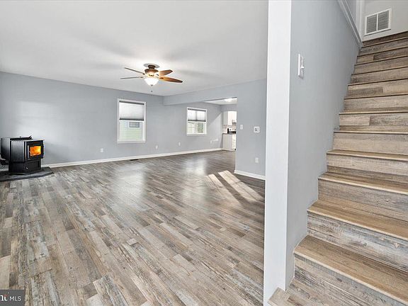 A must see! This spacious 4 Bedroom 2.5 Bath home features an open floor plan with over 1800sf of living space. Primary bedroom with en suite bath, custom tile shower and walk in closet on the main level. Very large second bedroom and second full bath also on 1st floor. Two additional bedrooms on upper level. Wonderful luxury vinyl plank flooring throughout. Completely move in ready and entire home just painted. Expansive kitchen, dining, plus living area flows nicely, ideal for entertaining. Full laundry room with cabinetry. Kitchen features beautiful white cabinets, tile backsplash, stainless appliances, with upgraded countertops. Rear screened porch with steps to fenced in area, front porch, detached 12 x20 garage, and plenty of driveway parking. Additional features include alarm system, new garbage disposal, whole house water filtration system with reverse osmosis at kitchen sink, pellet stove in living room. Don't wait to schedule your tour!