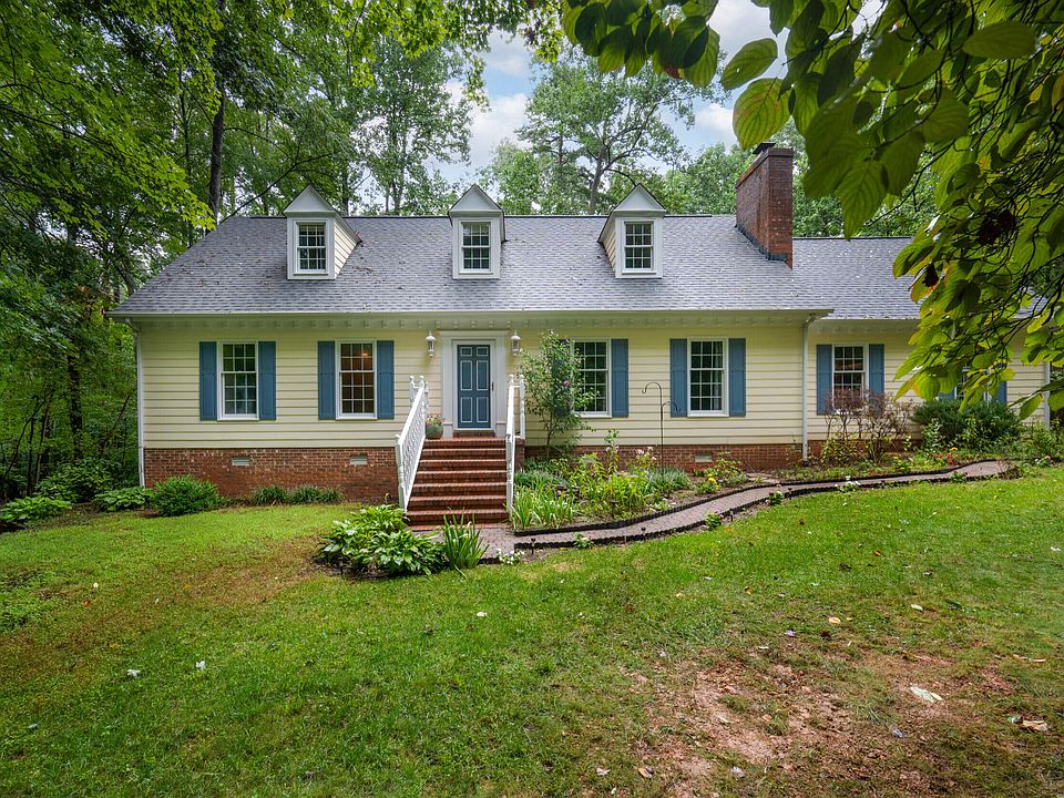 Escape to your own private retreat in sought-after Crosswinds Estates. Tucked away at the end of a private driveway on nearly 4.5 acres, this charming Cape Cod offers the perfect blend of timeless character and modern updates. With 4 bedrooms (3-bedroom septic), multiple versatile nooks for home offices, hobbies, or reading corners, plus a spacious bonus room, the layout is designed for both comfort and flexibility. Thoughtfully renovated in 2019, the home features LED lighting throughout, pull-out cabinet drawers, a subway tile backsplash, hardwood laminate flooring, stainless steel appliances, a laundry chute, and more. The kitchen boasts stunning leathered granite countertops, while a central vacuum system makes daily upkeep effortless. The primary suite is a relaxing retreat with a large walk-in closet, soaking tub, and separate shower. A heated Carolina room invites you to enjoy the beauty of each season, surrounded by serene nature. Offering exceptional privacy without sacrificing convenience, this property is just minutes from Pittsboro, Apex, Raleigh, Chapel Hill, and Cary—providing the ideal balance of seclusion and accessibility.