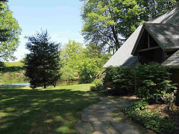 Very rare mid century brick chalet with stunning Crystal Lake views in park like setting just a short stroll from the Rhinebeck Village center. Lovingly updated and ready to move right in with new roof, modern kitchen with new appliances, freshly painted and immaculate. Interior features beautiful cedar and brick, soaring ceilings and wall of glass overlooking perennial gardens and mature trees. Wonderful loft leads to mahogany deck breathtaking views of the lake. Adorable cedar shed for tools and gorgeous grounds complete the picture.