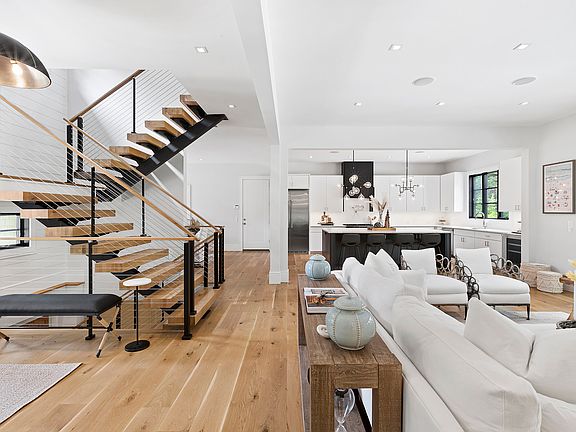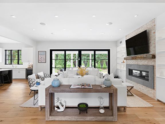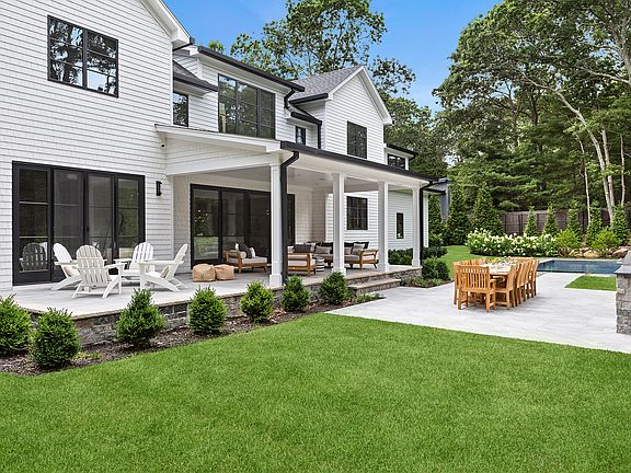 Rental Registration #: 24-1197 Your perfect rental retreat awaits in prime East Hampton! This stunning, brand new custom home at the end of a quiet cul-de-sac truly has it all - from impeccably-designed modern interiors to blissful outdoor spaces, to a premier location by the bay. Features include 5 large en-suite bedrooms (including first and second floor primary suites), 6.1 spa-like bathrooms, a spectacular indoor-outdoor flow for entertaining, and incredible amenities like a pool, spa, built-in outdoor barbecue, interior sports court, wine cellar, gym and more! Brimming with fine design on all 3 levels, this transitional-style gem exudes contemporary elegance with an open floor plan and fabulous backdrop for the host. A generous great room with a striking fireplace, custom built-ins, 8" wide-plank white oak floors, and wall of glass with sliders to the covered patio makes a luxurious impression. The chef will love the sleek, stylish open kitchen appointed with high-end finishes, a huge quartz stone center island, and top-of-the-line Viking appliances including a wine cooler. The main level primary suite showcases its own charming fireplace, along with a custom-outfitted walk-in closet and beautiful bathroom. Natural light pours through the artful open steel-cabled staircase that rises to the upper story. Here you'll find another soothing primary suite with a gorgeous full bath and bonus room that can function as a home office, lounge, nursery or other purpose. Three additional bedroom suites and a full laundry room also occupy this level. For the ultimate recreation, the lower level is the place to be! The full-size sports court with 16' ceiling height is great for playing basketball, volleyball, etc. Fun for all continues with a den/recreation area, full bar with refrigerator drawers, game area with foosball table, climate-controlled wine room, separate gym, and a full bathroom! For outdoor pleasure there are multiple patios and entertaining areas as well as a sparkling heated gunite swimming pool and spa! Among the other highlights is an integrated sound system throughout the property, along with flat screen TV's everywhere! Located in Settlers Landing, around the corner from the bay, this masterfully-crafted home can be your oasis for the rest of the summer and beyond!