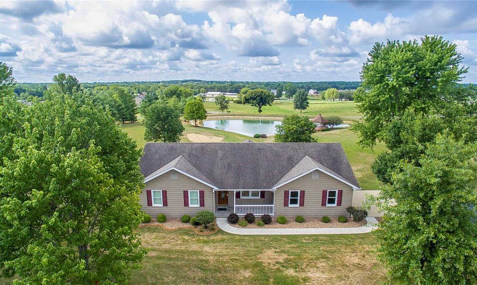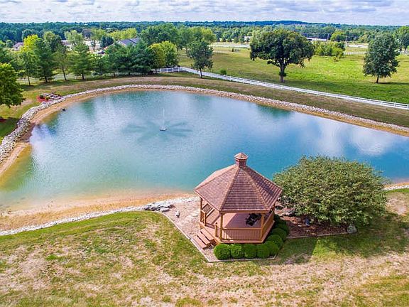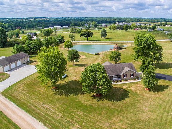 For more info and to schedule a private showing call/text Mark Hiller 314-397-9151... COUNTRY HOME with 1-ACRE PRIVATE LAKE (stocked with bass & catfish), 3+ bedrooms, 2.5 baths, 7-CAR GARAGES, FINISHED WALKOUT LOWER LEVEL, on gorgeous 4.44-ACRE LOT. Upgraded 1890 sq ft workshop/garage, insulated, heated, with half bath, plus 400 sq ft covered storage. Located just 4 minutes to Hwy 61, 8 minutes to Wentzville, in HORSE-FRIENDLY community full of wildlife near the Cuivre River. Leaded glass entry door, vinyl siding/soffit/fascia, architectural shingle roof, charming covered porch, landscaping and exterior lighting. WALL OF WINDOWS overlooking scenic lake, GAZEBO and WATERFALL. Easy-care WOOD LAMINATE FLOORS throughout most of main level. Wood kitchen cabinets, tile backsplash, gas cooking. Lower level family room with VENTLESS GAS FIREPLACE, recessed lighting, rec room, large office/sleeping room. Quality WOOD PANEL DOORS, crown moulding, wainscoting detail. 60-foot patio for INCREDIBLE OUTDOOR ENTERTAINING! Pre-inspected septic system. Paved main road to home.