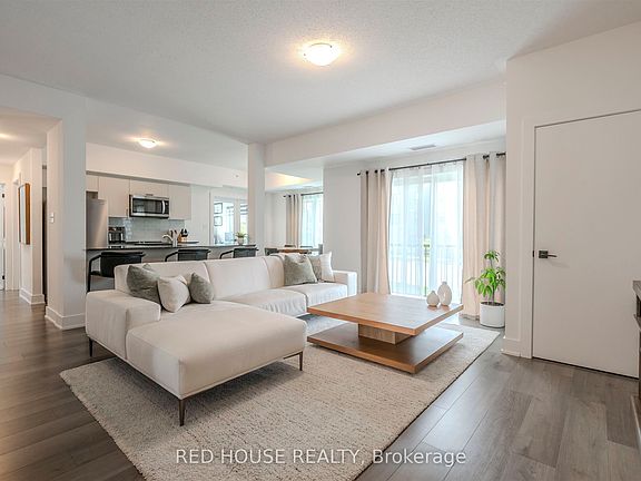 Welcome to Unit 102 at 8 Culinary Lane, a stunning 1,199 square foot corner suite in the sought-after Bistro Condo community, built in 2023. This spacious 2 bedroom + den, 2 bathroom home is filled with natural light in every room-including the den-thanks to its corner exposure. Thoughtfully designed with numerous upgrades (flooring in kitchen, oversized washer and dryer, custom closet and pantry organizers), the unit features laminate hardwood flooring in the main living room, dining room, kitchen and den, upgraded appliances in the chef-inspired kitchen, and a balcony with a gas line. The open concept living room and dining area create a perfect setting for entertaining, while the large kitchen offers ample counter space and storage. Both bedrooms are generously sized - the gorgeous primary bedroom easily accomodates a king-sized bed, with the den providing a versatile space ideal for a home office or creative studio. The home includes one underground parking spot. Residents of Bistro Condos enjoy an impressive array of amenities including a fitness centre, basketball court, children's playground, outdoor BBQ stations plus a unique indoor communal kitchen for hosting larger gatherings. This home has been lovingly maintained by its sole owners and showcases a fresh, modern design paired with comfort and functionality. With its premium finishes, abundant storage, and unbeatable natural light, this unit offers an elevated condo lifestyle in a vibrant, growing community-perfect for those seeking space, style and convenience.