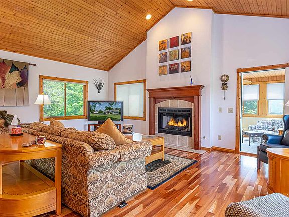 Clean and pristine! Attention to detail is evident in this immaculately kept 3 bedroom/3 bath Galena Territory retreat with tremendous curb appeal and quality finishes throughout all sited on .86 acres with incredible open yard space, lush treed backdrop, and oversized 2 car detached garage. Open and airy main level greets you with warm wood clad cathedral ceilings above and gorgeous cherry floors below, both spanning throughout the dramatic great room that combines a generous living area with gas fireplace, access to light and bright 3 season sun room, large dining area with access to rear deck, and stunning kitchen with beautiful granite counters, center eat-at island, stainless appliances and cabinetry with both light and dark accents to highlight the space. Retreat to the master bedroom to find more wood clad cathedral ceilings and cherry flooring, direct access to the rear deck and a luxurious master bath with whirlpool tub, separate shower and vanity with stone top. Descend to the finished walk-out lower level to find a comfortable family room with direct access to paver block patio and rear yard, two large guest suites each with their own nicely appointed full bath, and laundry/utility room. Detached garage offers ample space for vehicles and plenty of room for additional storage, workshop, etc. Enjoy the lovely setting and surrounding nature from the expansive rear deck, covered porch entry, lower patio or enclosed 3 season sunroom. Huge park-like side yard is great for outdoor recreation and provides a nice natural buffer. Sold beautifully furnished with contents to be transferred via separate bill of sale. Truly, a great place to grab the keys and start to enjoy. Location offers a setting not far from all the amenities of The Galena Territory, including Lake Galena and Owners' Club with indoor pool, outdoor pool, fitness facility, multi-purpose gym, and outdoor tennis courts. New shingles 2021.