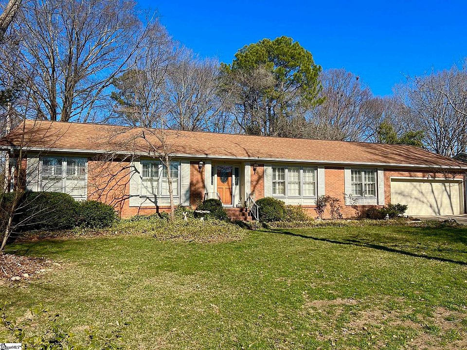 Eastside single level brick home. Located in Cunningham Acre, Taylors, its on a half acre, level lot with no HOA. This house just needs some TLC to transform it into a showplace home once again! Its a classic ranch floor plan with 3 bedrooms and 2 baths, formal living room, formal dining room, and a large great room with gas log fireplace. The kitchen features a breakfast area at the bay window, providing lovely backyard views. An oversized garage also has a great 7x21' work room for woodworking or other hobby or could be used as easy access storage. With a little updating and polishing, this solid construction home will be a true gem. It's a fantastic location and zoned for great schools. This is an opportunity to work with a blank slate and create your personal dream home.