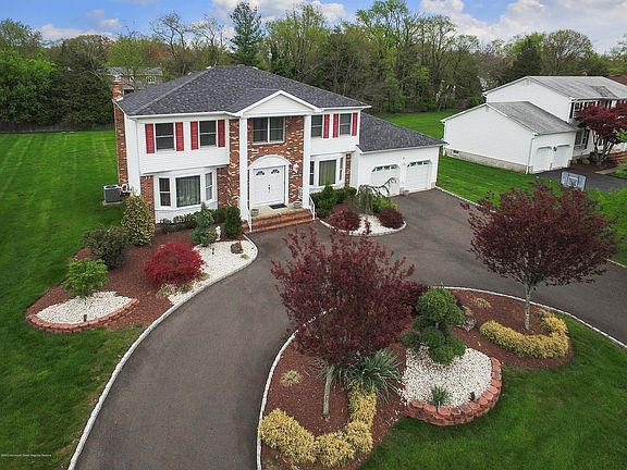 CLASSIC COLONIAL! Beautifully updated 5 bedroom, 2.5 bathroom home on a cul de sac in desired Northern Manalapan loaded with upgrades. Large tiled foyer with double coat closets leads to formal living room and dining rooms, both with bay windows and hardwood floors. Continue on to the gorgeous kitchen with custom cabinets, granite counters, center island, mosaic backsplash and stainless steel appliances. Kitchen opens into the spacious family room with wood burning fireplace. First floor also has large laundry room, half bath and bedroom. Upstairs offers 4 bedrooms, main full bathroom with master suite having walk in closet and separate private bathroom. Full finished basement with built in bar and plenty of entertainment areas.