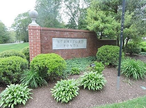At beautiful Stratford Ponds, 7-room end unit townhouse w/garage, and over 2100 sqft of living space. Living room boasts cathedral ceilings and fireplace. Convenient 1st floor master suite, w/walk-in closet & attached bath w/large shower & dual sink vanity. First floor also offers a separate den which is unusual at Statford Ponds. Laundry & powder room round out 1st floor. Upstairs is 2nd bedroom with wall of closets. full bath, & giant loft space. Central air. End unit on dead end. Deck overlooking landscaped yard. Association pool, clubhouse, & tennis courts.