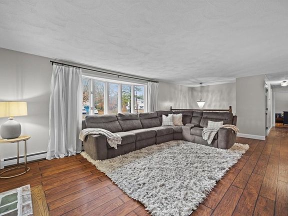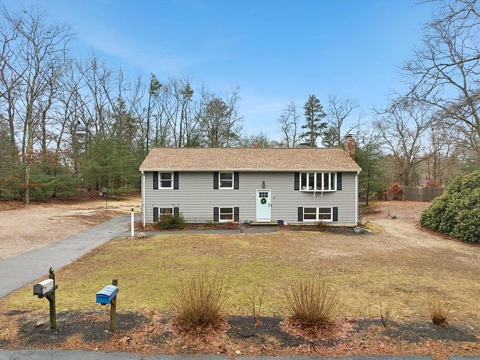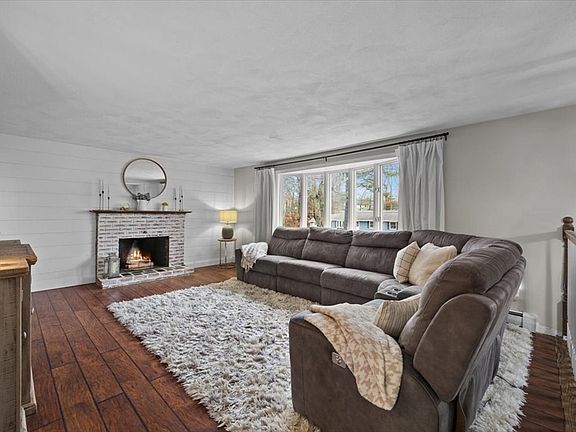 THIS BEAUTIFUL MOVE-IN READY split-level home is located in an established Plymouth neighborhood! Large sunny living with beautiful brick fireplace and wood flooring, good size open concept kitchen with stainless steel appliances, freshly painted cabinets, small pantry, beautiful farmers sink and dining room area with wood flooring and access to 3 season tiled sunroom! 3 bedrooms include a large master and 2 additional good-sized bedrooms. The renovated main bathroom has a beautiful double vanity, board and batten, and has access from the hallway as well as the master bedroom. The lower level includes a large family room with a fireplace and an updated 3/4 bath with a new vanity and shower. Large unfinished area for storage and laundry. The large level backyard is great for entertaining or simply sitting back and relaxing! New septic system and roof and recently painted outside. Close to elementary school, shopping, highway access, downtown Plymouth and so much more