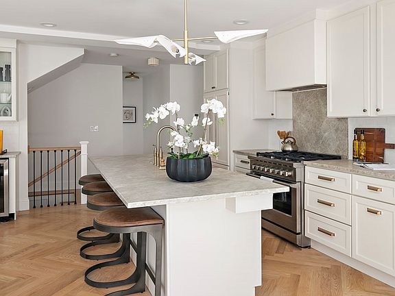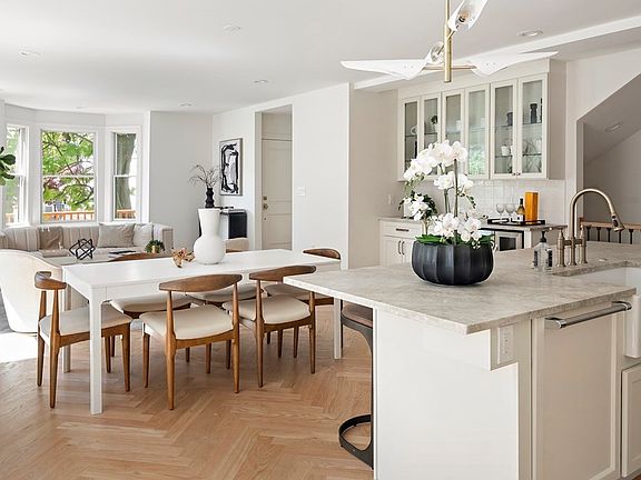 Rare Opportunity in the highly sought after Davis Sq, area of Cambridge. This bi-level contemporary unit offers a gracious open-plan with elegant high-end finishes. Extensively renovated by a top local developer, this unit comprises a Sun-Filled Living and Dining Room with Custom Gas Fireplace and a chic Modern Kitchen that’s ideal for entertaining. The designer kitchen features Fisher Paykel appliances, custom hood and cabinetry, and over-sized dining peninsula. The glorious main bedroom has generous closet space and en-suite bath with double vanity. Down the stairs, a large Family Room, Two Additional Bedrooms, and full bath welcome you. Features include herringbone pattern floors, a stylish powder room, wine chiller, and Pella windows.  A high-efficiency 2-zone HVAC, In-Unit Laundry, Navien On-Demand Hot Water, and Ring Intercom are included. Top it off w/ a private front deck, a private patio, and exclusive parking space. Close to Red Line T Stops, trendy restaurants, and shops.