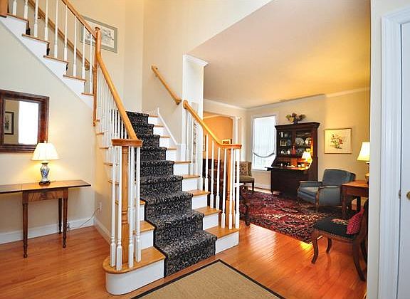 Pristine home with many upgrades. First floor office, upgraded kitchen with extra high cherry cabinets. Open kitchen to cathedral family room with fireplace. Very spacious master bedroom suite and guest room with full bath. Fully finished walk out lower level adds an additional 540 square feet. Premium lot with no home to left and guest parking across street. Professionally designed landscaping and garden. New hot water heater, new stainless refrigerator and stove, CA closets, leaf guards, premium window treatments, roll out shelves in kitchen cabinets and upgraded carpeting.