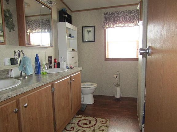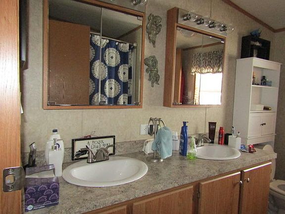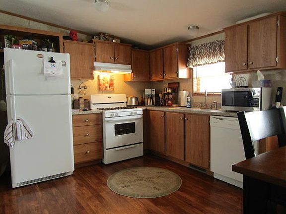 Sunny and meticulously well maintained double wide located on a corner lot. 10 X 12 shed is included. Open concept floorplan with vaulted ceilings. 3 bedrooms, 1 1/2 baths, laundry room. Fee include water and sewer.