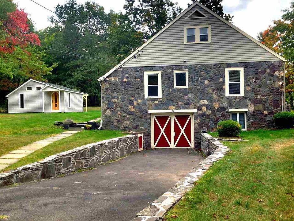 Classic stone and clapboard cape with all of its original charm. Open floor plan and lots of light. Beautiful living room, dining area with stone fireplace. Lovely master bedroom with bath. Large space on second floor, perfect for office or bedroom. Huge eat in kitchen overlooking private bluestone patio. Newly finished lower level family room. Property is landscaped and beautiful. An added bonus is a sweet and newly renovated cottage with bath. Perfect for a rental or guest room!