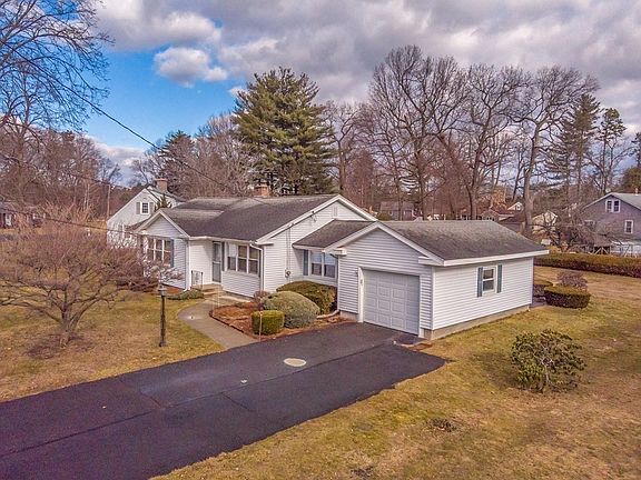 PRIME LOCALE for this lovingly maintained ONE OWNER 3 BEDROOM RANCH .... VINYL SIDED exterior .... set on a LEVEL .35 ACRE lot .... ALL HARDWOOD and CERAMIC FLOORING (except sunroom) .... charming ARCHED ENTRIES .... FORMAL DINING ROOM with BUILT-IN HUTCH .... sun filled LIVING ROOM with wood burning FIREPLACE and BUILT-IN BOOKCASE .... APPLIANCED kitchen with CERAMIC FLOORS, OAK CABINETS and DINING AREA with views and access to the backyard .... SUN ROOM is heated by electric and also has 1st floor LAUNDRY HOOK-UPS ... 1 CAR GARAGE with an electric opener .... INSULATED WINDOWS .... CENTRAL AIR .... FHA GAS HEAT .... Great neighborhood setting and close to major routes & MA Pike for commuting!