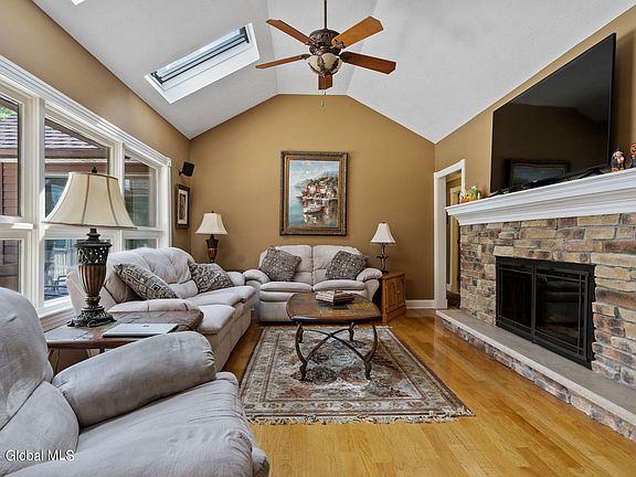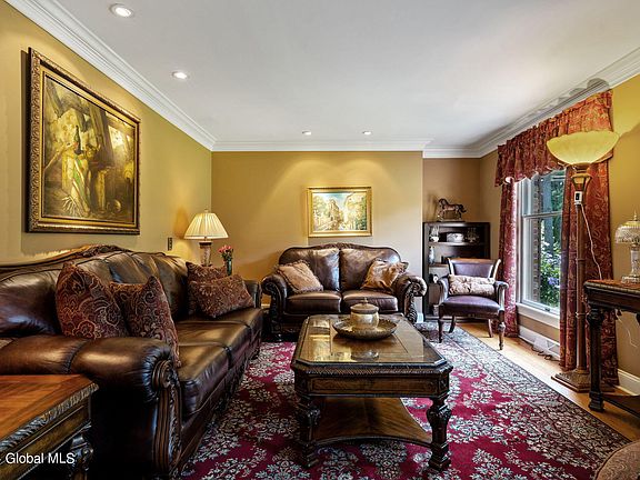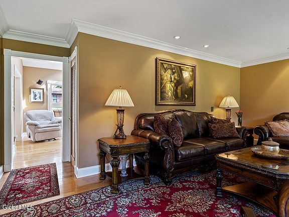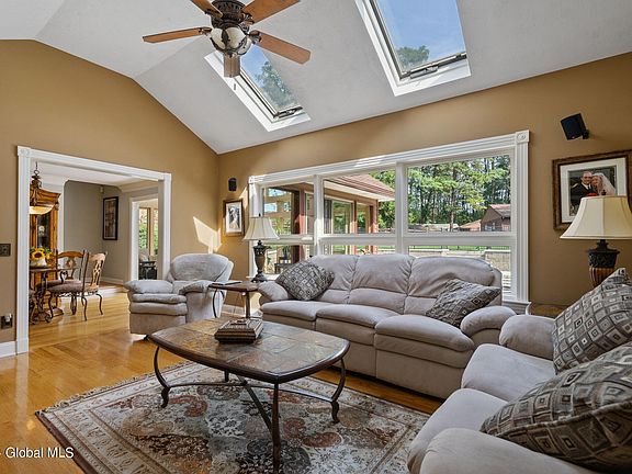 Discover this impeccably maintained builder's own home, nestled on 2 separate lots in the town of Colonie. This private oasis borders the Pine Bush Preserve and offers a rare combination of a prime location yet private and peaceful. This home features all updated mechanical systems, a brand-new roof, irrigation system, and two detached heated garages in addition to the attached two-car garage. Custom details throughout including crown molding and solid cherry doors. Step into the vaulted sunroom and out to the backyard with a Trex deck, patio, pool house, and heated pool with a brand new liner. The stunning first floor primary suite boasts vaulted ceilings, a walk-in closet, and direct access to the deck. The finished lower level includes a gym, 2 guest rooms, and a game room. Must see!