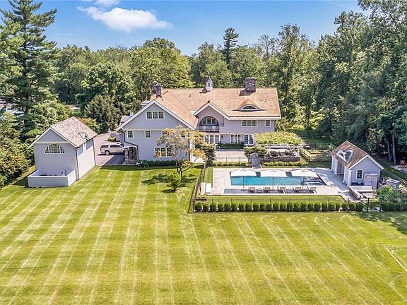 Exquisite gated estate sited down a long driveway on private mid-country lane with impeccably renovated 5-bedroom main house, guest house, pool pavilion and exceptional grounds. This secluded oasis is surrounded by green and highlighted by botanical gardens with staged blooms, an expansive lawn area, a stone grilling station covered by wisteria filled trellis, outdoor fireplace, play-set area and beautiful pool with pool house. Since the complete renovation work in 2016, the house and grounds have been meticulously maintained. The pristine interior of this stone and shingle-style home is flooded with natural light and the living space extends to 8,315 sq. ft. on three levels. Separate guest quarters above the detached garage structure. A truly unique home new to the market - move in ready.