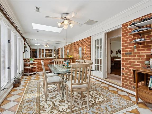All-brick ranchSunroom with skylightsWalk-in attic spaceTwin dual-zone hvac systemEn-suite half bathExpansive patioWall-to-wall shelving
