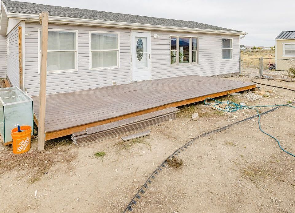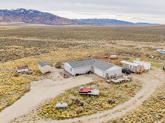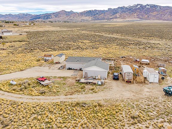 Enjoy peaceful living and incredible mountain views from this Spring Creek home. Sitting on 4.22 acres, this 3-bedroom, 2-bath property offers plenty of space and thoughtful updates throughout. Recent exterior improvements include new vinyl siding, steel gutters, and a Trex deck at the front entry. Inside, the living room's added large window lets in natural light and perfectly frames the Ruby Mountains. You'll also find an on-demand water heater with sediment filtration, a built-in entertainment center with high-efficiency electric fireplace, and durable laminate and tile flooring.Outdoors, the property is fenced and ready for animals, with RV hookups for water, power, and sewer. A one-year-old 200 sq ft shed and fully insulated shipping container both stay with the property, offering additional storage or hobby space.This home combines comfort, functionality, and open views-everything you love about Spring Creek living.