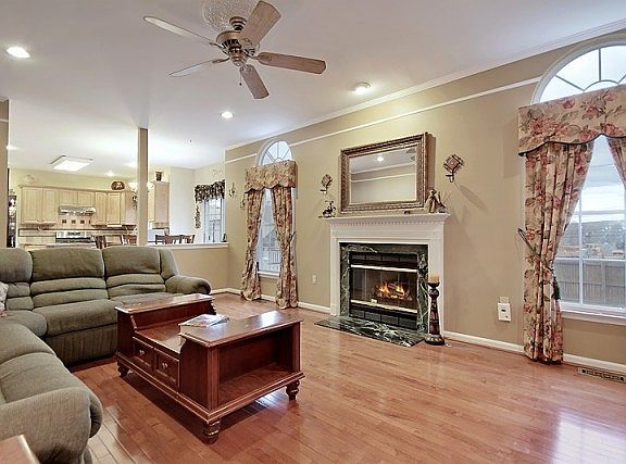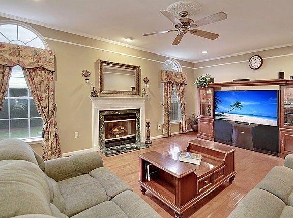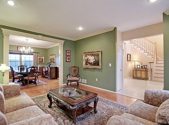 This elegant 4 bedroom, 2.5 baths Colonial set high on cul-de-sac in sought after neighborhood is move-in ready! The grand 2 story entry leads to the gourmet kitchen boasting granite counter tops, center island,SS appliances & opens to the bright & airy family room w hardwood floors, palladium windows & gas fireplace. Spacious formal dining & living rooms adorn hardwood floors & custom detailed moldings. The master bedroom is complete w high ceilings,walk in closets, luxurious master bath w dbl sinks, stall shower & jetted tub plus 3 additional bedrooms & full bath complete this level. The finished basement is perfect for entertaining with rec area & plenty of storage. Fenced in backyard offers maintenance free deck & gorgeous paver patio. Paver driveway, irrigation system, 2 car garages & so much more!