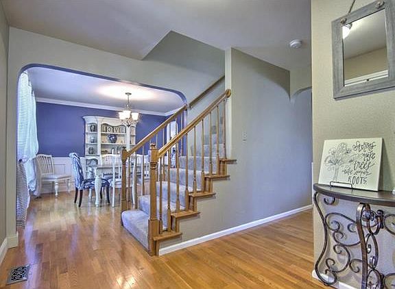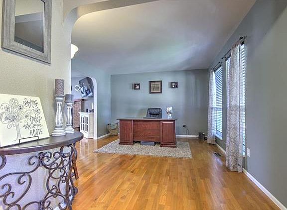 New price! This wonderfully updated home is one you won't want to miss! Beautiful landscaping and brick exterior make for great curb appeal! To the right of the entry foyer is the formal living room/office with wood floors that run throughout the main level. An archway leads to the family room with a bay window and cozy, brick, woodburning fireplace! The eat-in kitchen has been updated with granite counters, tile backsplash, and stainless steel appliances! Enjoy entertaining in the bright dining room. Notice convenient main-floor laundry! A half bath completes the main floor. Upstairs, the master suite is a retreat with walk-in closet, dual-sink vanity, and tub and separate shower. Three more spacious bedrooms, all with newer carpeting, and a full bath round out the upper floor. The finished basement adds tons of living space with a playroom, rec room, storage, and a half bathroom. Enjoy the summer on the 20x20 patio, shaded by mature trees in the level, fenced backyard. A must see!