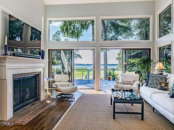 Discover breathtaking water and marsh views across the signature fairway of Cotton Dike #18 in this open and spacious property on Dataw Island. Welcome to 8 Doe Point where you will find a home that is defined by stunning views and spectacular sunsets. The Great Room features warm hardwood flooring and expansive floor to ceiling windows flooding the home with natural lighting. The Gourmet Kitchen includes a Wolf gas range and top of the line stainless steel appliances. The quartz countertops, nickel plated fixtures and large island help create a functional and stylish space. The Kitchen also features a Breakfast nook with a Subzero wine fridge and built in bar. Entertaining family and friends will be a breeze with the open Dining Room and large sliders to a Deck that expands the entire backside of the property. Watch the sunrise and sunset from your Carolina Room with shiplap walls, built ins and lots of glass. This will quickly become a favorite spot to relax & unwind. The first floor Primary Suite with five-piece bath and a first floor Private Guest Suite with fireplace provide for ideal living. On the second floor you will find two large guest rooms featuring wonderful views, a full bath and lots of privacy for visiting family and guests. The room over the garage is finished space and the perfect art studio, office, or guest room. Two Baths have recently been updated with coastal inspired selections. A rare find, this home offers an ideal blend of elegance & comfort, with gorgeous views from nearly every room, and is located on a private street. As a resident of Dataw Island, you will have access to lifestyle amenities including a resort pool, a fitness center with indoor pool, two championship 18-hole golf courses, 8 tennis courts, a full-service marina, pickleball courts, bocce, an art center and more. Located just six miles from the beautiful historic downtown of Beaufort and the beaches of Hunting Island State Park. Membership in Dataw Island Club is required.