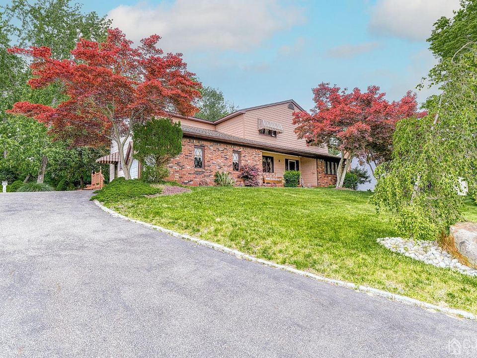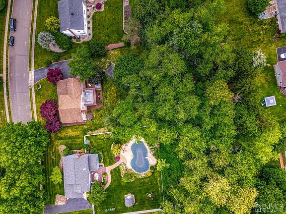 Beautiful 3000+ square foot two-story home on almost a half acre lot with a picturesque back yard featuring a pond with a waterfall and a fountain! This neighborhood is quite unique as it is one of the only neighborhoods in East Brunswick over by Farrington Lake with a public sewer system, not a septic system. The home has two additions, one is side mudroom with a spiral staircase leading to a second floor office/library and the second is back sunroom with tongue and groove cedar walls and ceiling and large picture and casement Andersen windows. The first floor features parquet hardwood floors in the living room and dining room, a large eat-in kitchen with custom cabinets, granite countertops, tile backsplash, recessed lighting and a butcher block island, and a family room with wood plank flooring, exposed beams, dental crown molding, Marvin windows with built-in blinds, and a wood burning fireplace with a full exposed brick wall! The second floor features an office/library and four large bedrooms and two full baths with the master bedroom featuring a dressing room and two closets. Home also features a finished basement, two-car side entry garage, covered front porch, newer HVAC, leaf guards on gutters and a newer roof. Conveniently located near all major highways and transportation to NYC!