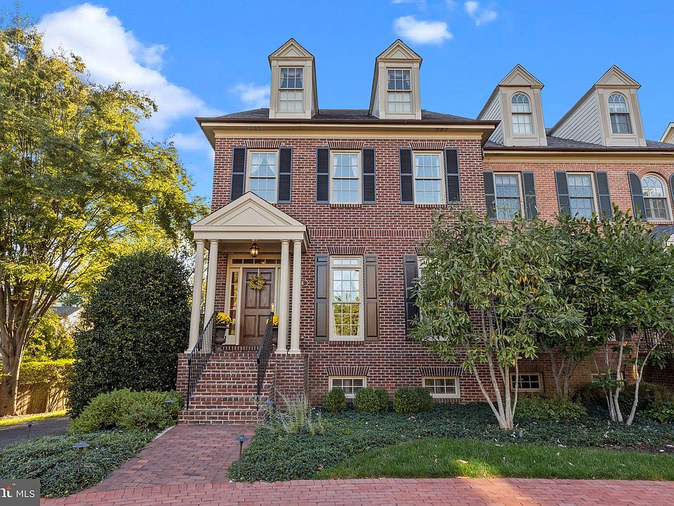Welcome to this elegant brick townhome situated in a prime location within the highly desirable enclave of Phillips Court, where low-maintenance living meets refined luxury just steps from shopping, dining and all the conveniences of town life. Rich hardwood floors and custom millwork flow throughout the four levels of this beautifully designed home. The gourmet kitchen is a chef’s delight, showcasing custom cabinetry, granite countertops, a center island with prep sink, pendant lighting, and a sunny breakfast area. Thoughtful upgrades include refrigerated drawers, a built-in espresso maker, wine cubby, and spice drawers—perfect for everyday living and entertaining. The adjoining family room is filled with natural light from oversized transom windows and opens to a spacious raised deck with elegant wrought-iron railings. A gas fireplace with marble surround creates a warm and inviting atmosphere. The formal living room features a second gas fireplace with marble surround and a classic wood mantle, flanked by custom cabinetry. Floor-to-ceiling windows flood the space with light, while the formal dining room and stylish powder room complete this level. Upstairs, the primary suite is a true retreat with two walk-in closets and a spa-like en suite bath boasting dual vanities, a jetted tub, and a custom glass-enclosed shower. Two additional bedrooms share a full bath, and there is a convenient second-floor laundry room as well. The third level offers a private bedroom, full bath, and a flexible bonus space ideal for a home office, exercise room, or playroom. The finished lower level expands the living space with a full bath and cedar closet, providing comfort and versatility. A two-car garage and additional parking complete this exceptional home.