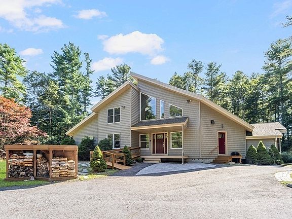 Move-in ready, one-of-a-kind custom-built Contemporary with 3 bedrooms on main level, offers a unique design. Upon entering, you'll be amazed by the cathedral ceilings, oversized windows, hardwood floors, fans, fireplace, wet bar, and stairs to the loft area. The light filled open floor plan offers: state-of-the art chef's kitchen with Bosch SS appliances, island/hood with range, custom cabinets, entertainment/dining areas and more! The primary bedroom suite on the main level features a spacious bathroom with walk-in tiled shower, skylight, marble counter/sink, walk-in closet and spa room with a therapeutic endless pool/treadmill! Two additional bedrooms, full bath and laundry complete the (2500 sq ft) main level. The 2nd level (500 sq ft) loft/ library w/custom bookcases, office, art/music rooms with a deck overlooking the back yard. Screened porch, deck, 2-car garage, 3 zone heat & A/C, generator, handicap front ramp, private1.61-acre lot, vinyl siding, and commuter rail nearby!